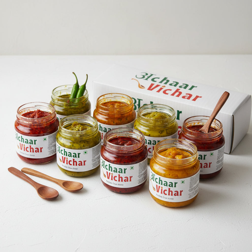 Try our most loved pickles with the Bestsellers Trial Box! This popular collection features 8 jars (100gm each) of customer favorites: Mango, Jackfruit, Green Chili, Bharwa Red Chili, Lemon Sweet n Sour, Amla, Garlic, and Chana. The perfect way to experience why these are our top sellers.